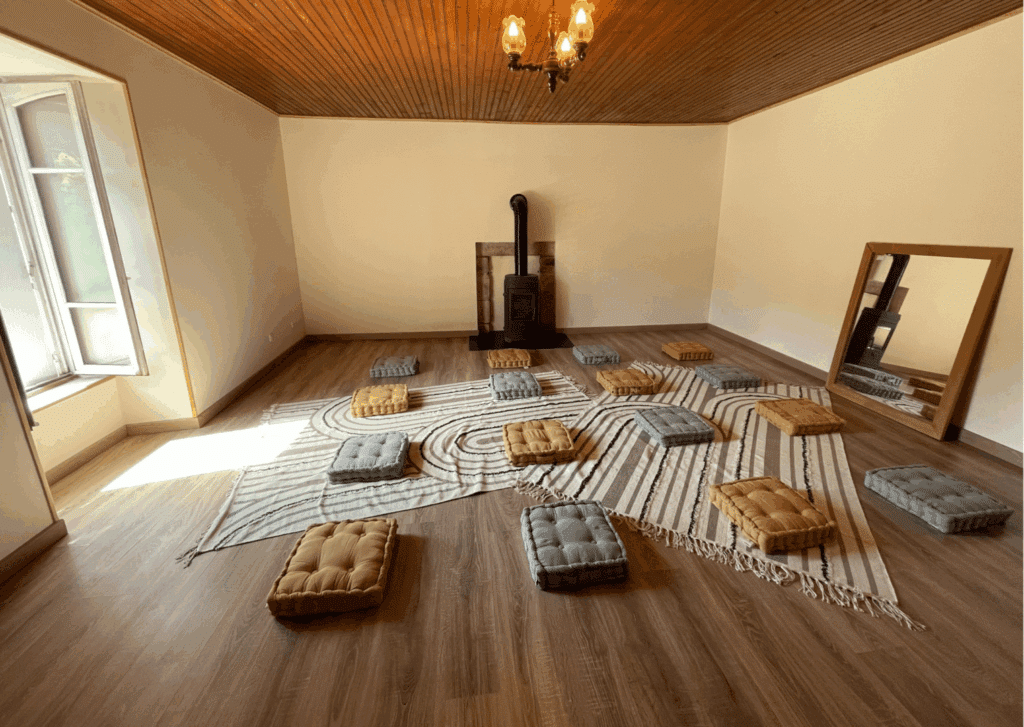 Les réunions prennent place dans une grande pièce lumineuse où les idées circulent librement, tandis que les pauses s’étirent sur la terrasse, face à la verdure.